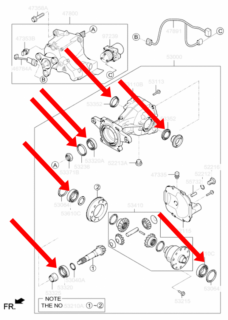 Применяется для самостоятельного ремонта редуктора Hyundai Santa Fe 2013-2018 530003B500, 53000-3B500